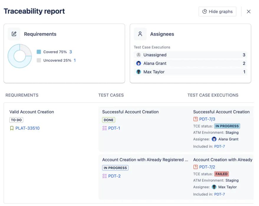 Link requirements, test cases, executions and defects instantly. Identify testing gaps and release confidently with coverage and traceability reports.