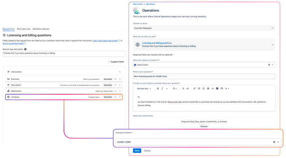Returning to the app updates, you’ll be happy to hear that the HubSpot custom fields now work directly on the JSM Customer Portal’s Request form – making it smoother than ever for your customers to provide the information you need.