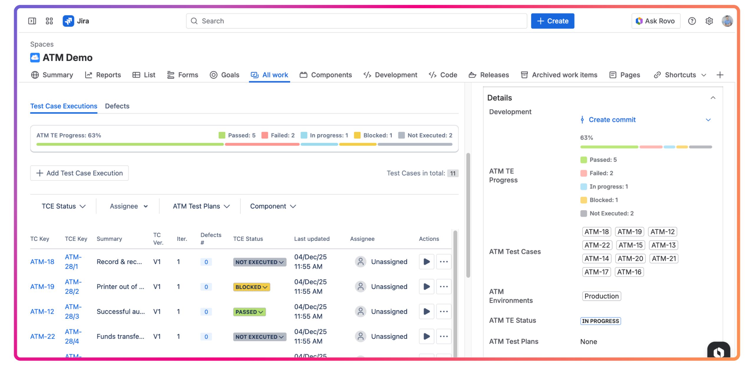 - Test Case Architect with Rovo: generate and refine test steps using Atlassian Rovo to speed up test design while keeping control.