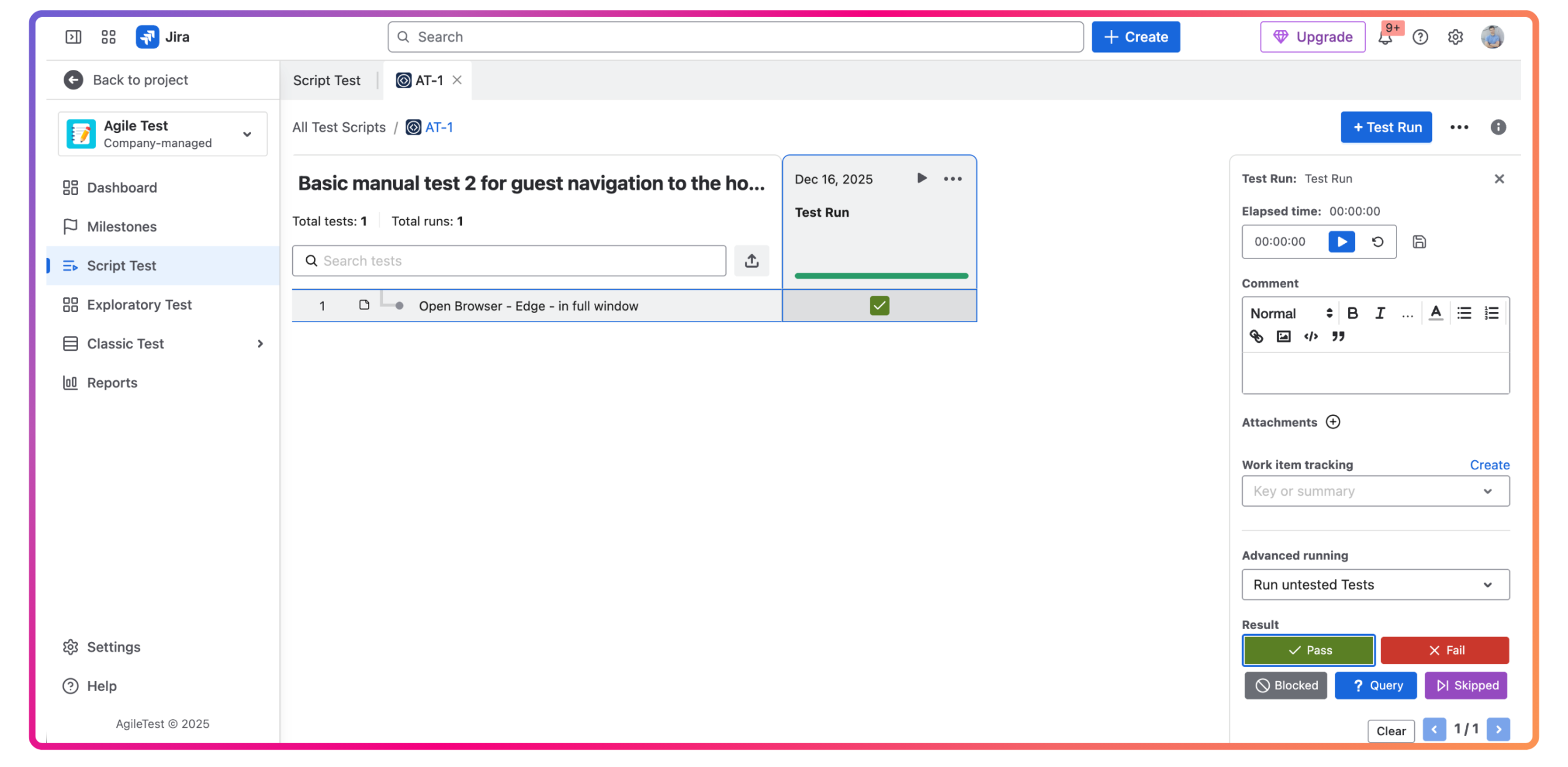 AgileTest is a Jira-native test management app focused on simplicity and intuitive usage. As such, it targets agile teams that want to keep testing lightweight and directly inside Jira issues, avoiding complex ALM layers.