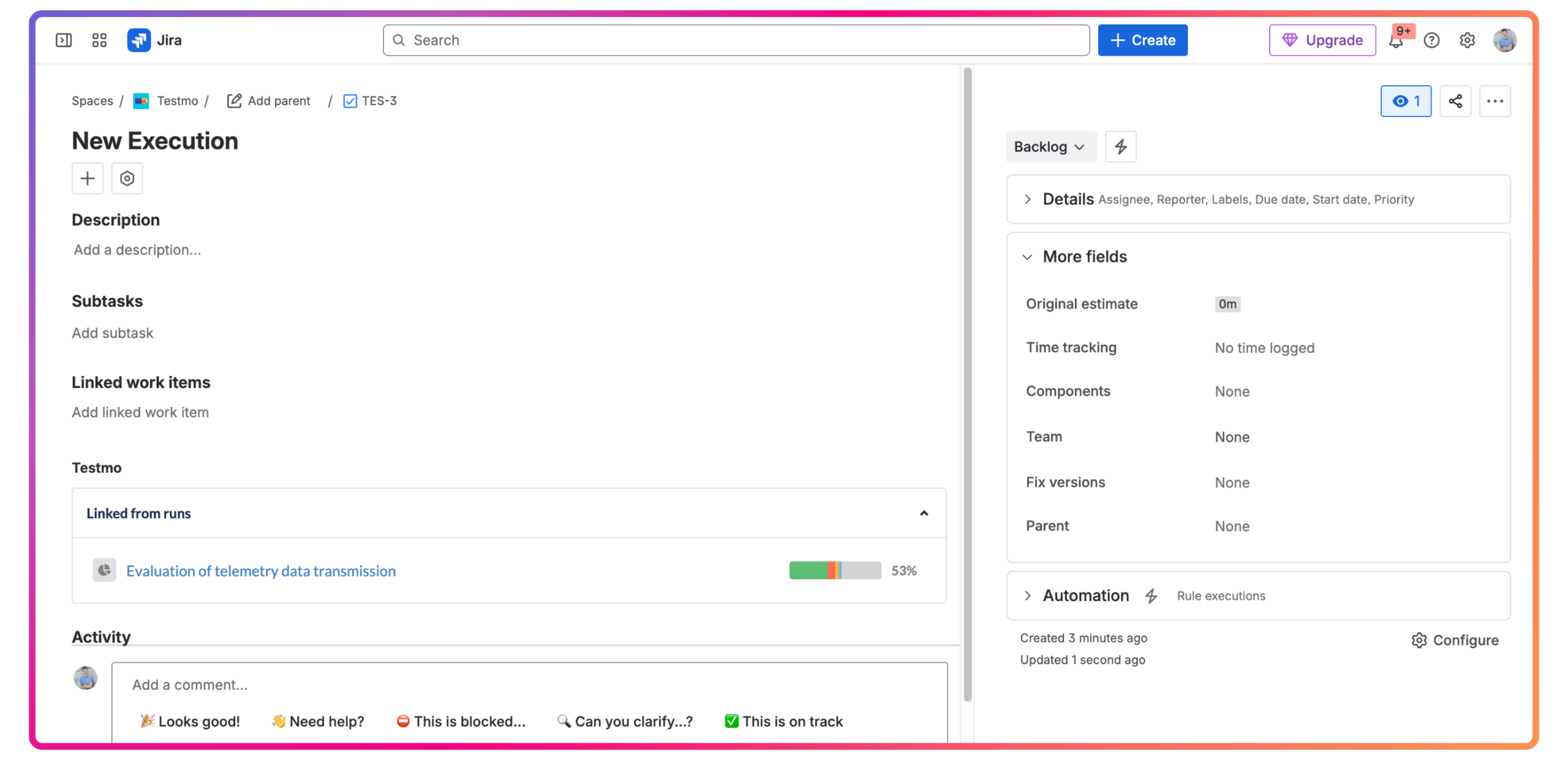 Testmo is an external SaaS test management platform with a Jira integration app. It targets teams that are ready to use a dedicated QA hub outside Jira, combining manual, automated, and exploratory testing in one place, while still linking back to Jira issues.