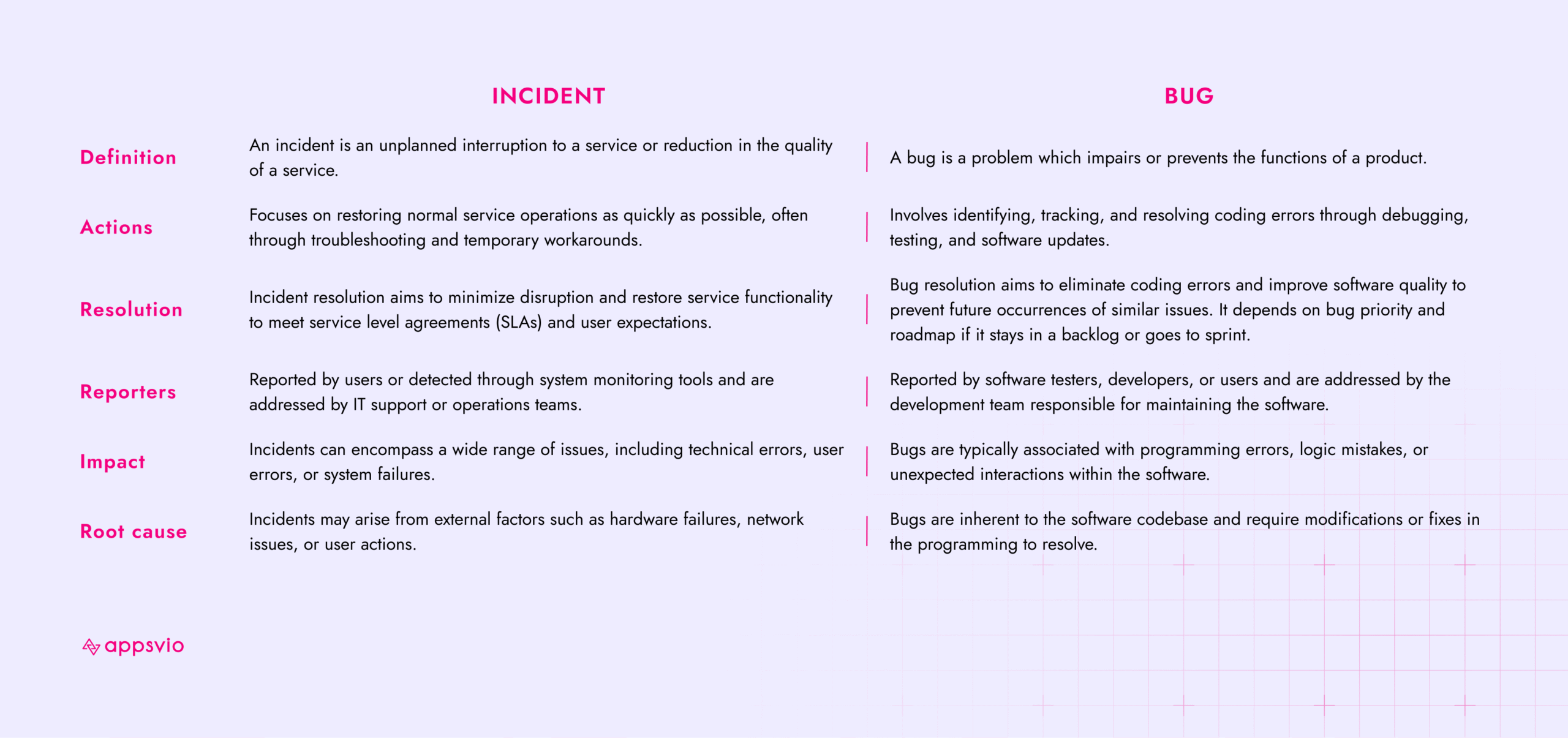 Differences between incident and bug