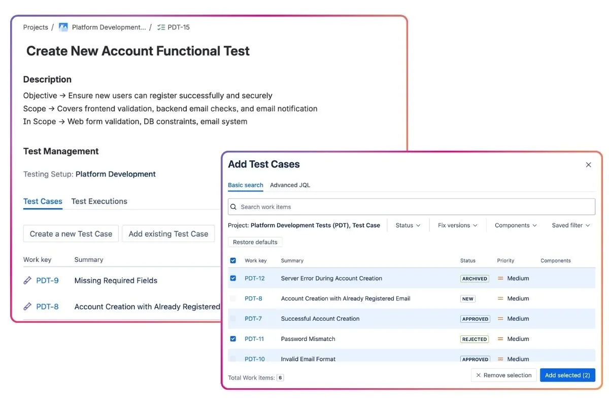 Here’s how you can write and maintain a test plan directly within Jira using ATM. This approach transforms your planning process from static documentation into a dynamic management hub: