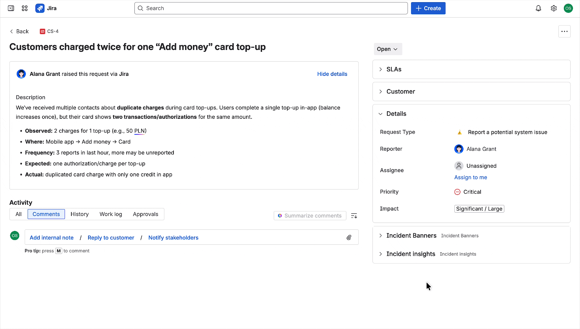 Automatic comment synchronization and incident banners keep agents, developers, and customers perfectly aligned throughout the entire lifecycle.