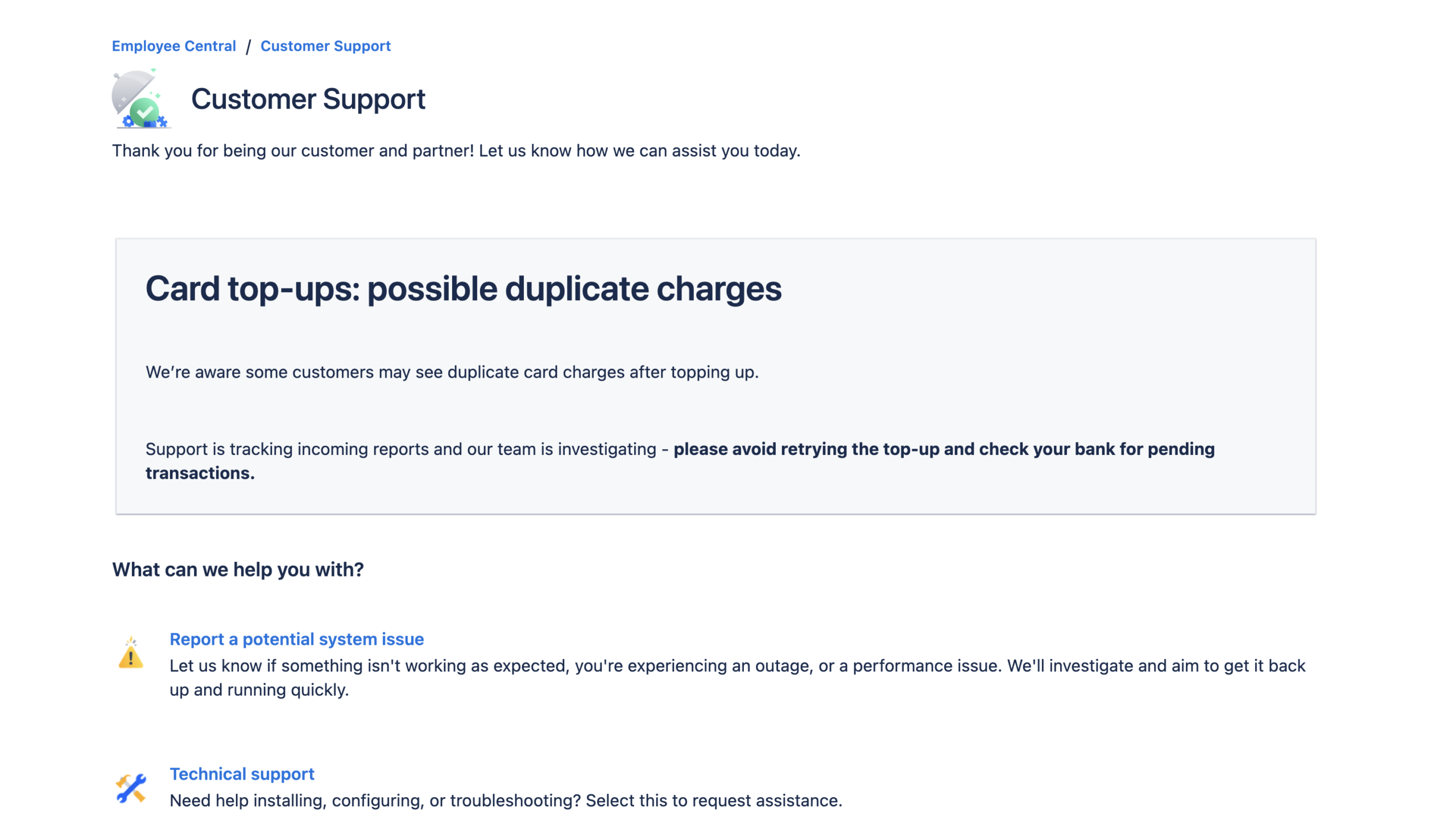 Use customizable banners to highlight critical information (like known workarounds or status) on the issue screen. Ensure teams act fast and customers receive timely, consistent updates.