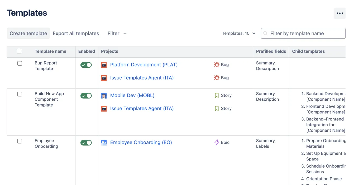 Instantly create multi-level issue templates and standardize your Jira work